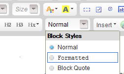 Seleccione o texto da expressão, clique na lista de Block Styles e mude para Formatted. |  | -